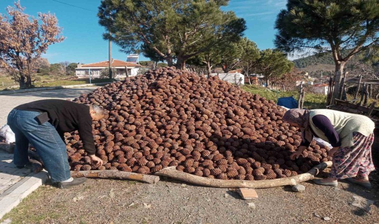 Burhaniye ilçesinde, kırsal Kırtık Mahallesinde fıstıkçamı kozalağı hasadı tamamlandı. Bu yıl, yörede kozalak rekoltesinin iyi olduğu açıklandı.