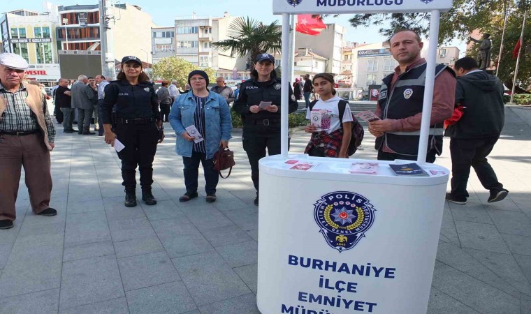 Burhaniye İlçe Emniyet Müdürlüğünde görevli komiser yardımcısı Esra Başol’un öncülüğünde Cumhuriyet Meydanında kurulan stantta KADES uygulaması anlatıldı. Vatandaşlara konu ile ilgili broşürler de dağıtan ekiplerin çalışması takdir topladı. Bilgilendirmenin devam edeceği kaydedilirken, uygulamaya katılan Emine Özavcı, ekiplere teşekkür etti.