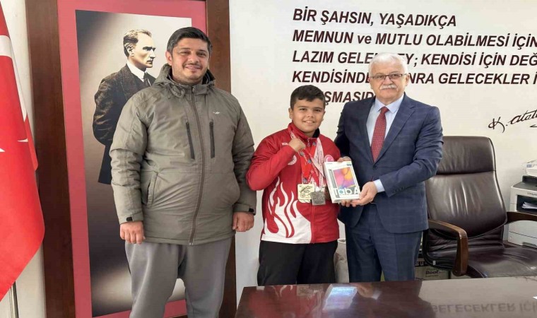 Başkan Deveciler, Ünal Yorulmaz’ın başarısından dolayı gurur duyduğunu ve onun gibi yetenekli gençleri her zaman destekleyeceklerini vurgularken, genç sporcuya tablet hediye etti.