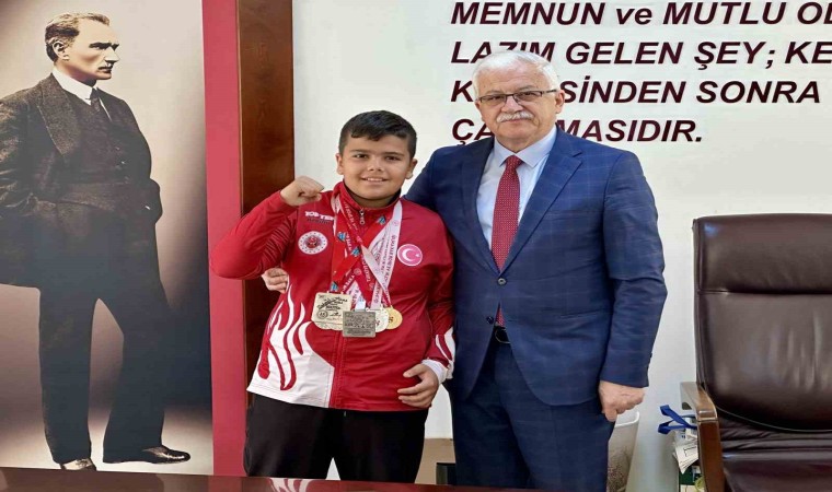Babası Zeki Yorulmaz ile birlikte, Burhaniye Belediye Başkanı Ali Kemal Deveciler’i ziyaret eden genç sporcu, başarısını paylaşarak mutluluğunu ifade etti.