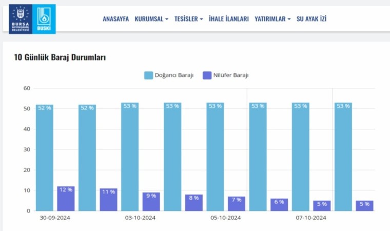 Yağmursuz geçen ekim ayı Bursa barajlarındaki su oranlarını olumsuz yönde etkilemeye başladı. Son 9 yılın en kurak Ekim ayını geçiren Bursa’da Doğancı ve Nilüfer Barajlarındaki su oranları bugün itibariyle Nilüfer Barajı’nda yüzde 4, Doğancı Barajında ise yüzde 53 olarak ölçüldü.