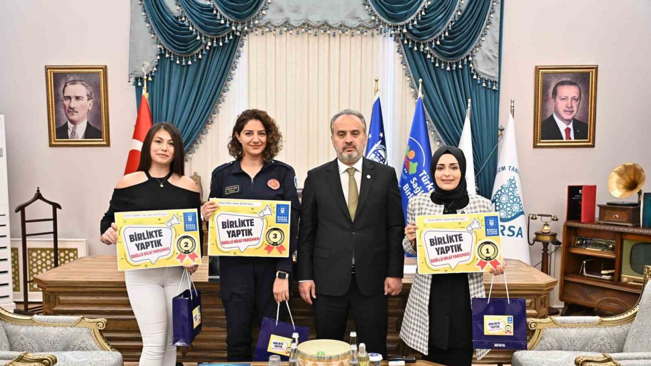Bursa’nın daha yaşanılabilir bir şehir olması adına Türkiye’ye örnek olan projeleri bir bir hayata geçirerek vatandaşlarla buluşturan Büyükşehir Belediyesi, kurum için motivasyon çalışmalarını da sürdürüyor. Son 5 senede yapılan proje ve faaliyetlerin yer aldığı ‘Birlikte Yaptık’ bilgi yarışmasında soruları en kısada sürede cevaplayan personeller, Büyükşehir Belediye Başkanı Alinur Aktaş tarafından ödüllendirildi.