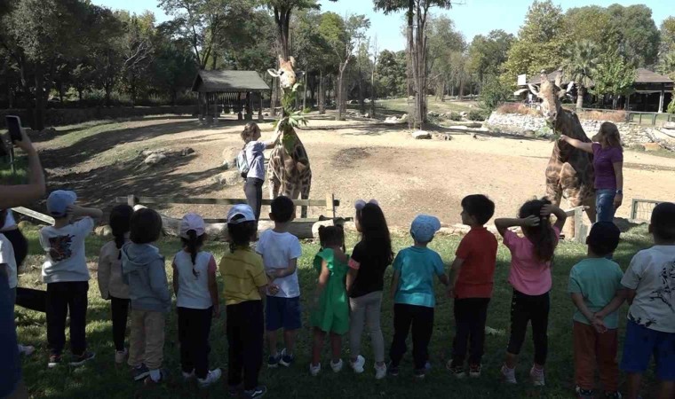 Anaokulu çocukları, zürafa beslemesini yakından takip etti. Öğretmenleriyle birlikte hayvanat bahçesine gelen minikler, heyecan dolu anlar yaşadı. Bakıcılar ve öğretmenleri tarafından beslenen zürafaları yakından inceleme fırsatı bulan öğrencilerin mutluluğu gözerine yansıdı.