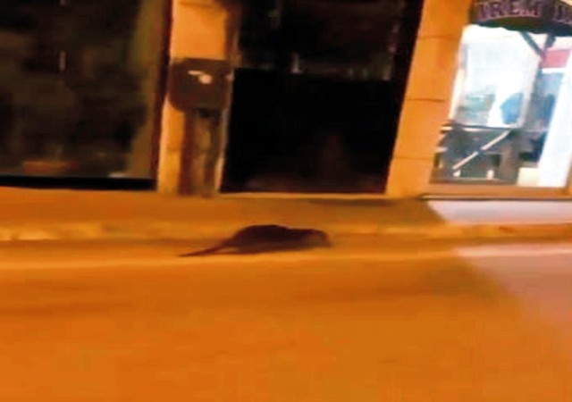MUDANYA İLÇESİNDE BİR SU SAMURU SOKAKTA DOLAŞIRKEN VATANDAŞLAR TARAFINDAN CEP TELEFONU İLE GÖRÜNTÜLENDİ.