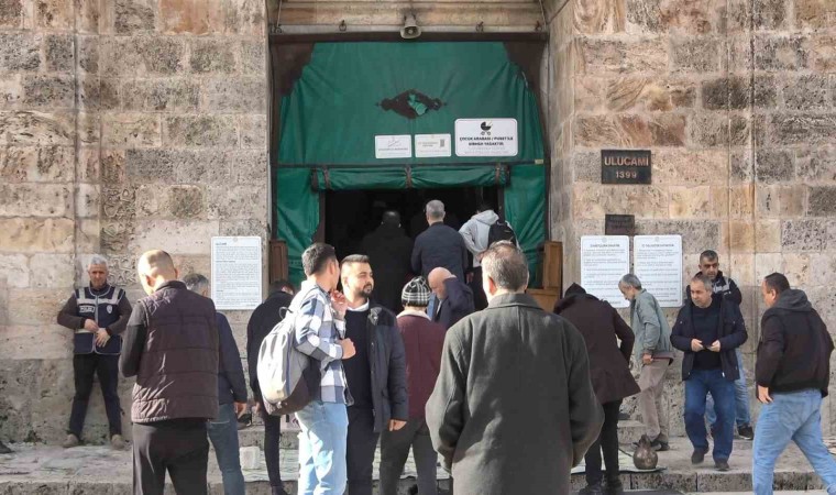 Bursa’da Ulu Cami’de kılınan cuma namazı sonrasında eller Filistin için semaya kalktı.