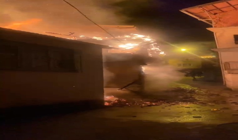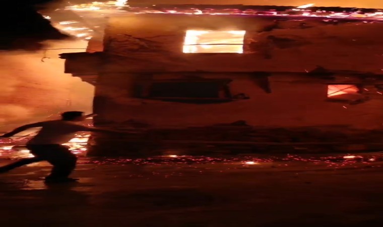 Ahırın alev alev yanma anı ise mahalle sakinlerinin cep telefonu kamerasına yansıdı.