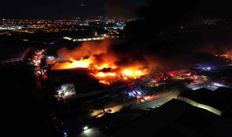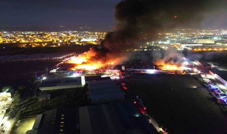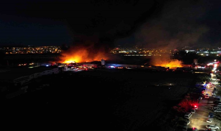 Bursa’nın İnegöl ilçesinde 10 fabrikaya sirayet eden yangın gece saatlerinde dron ile havadan görüntülendi.