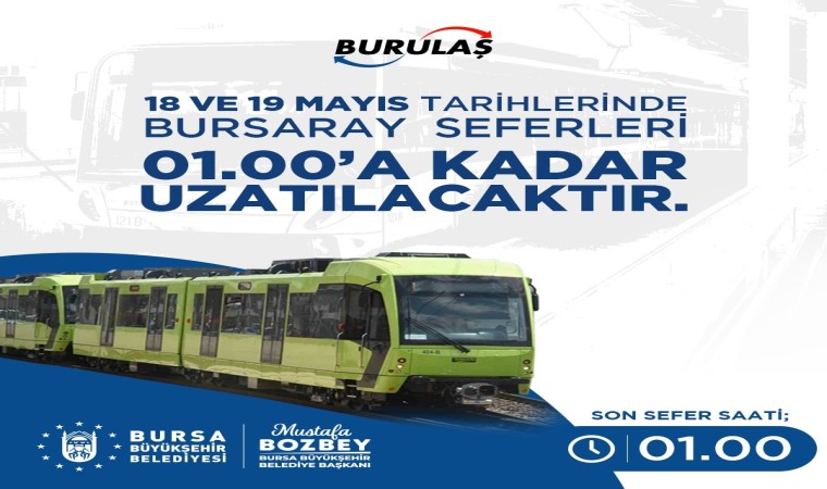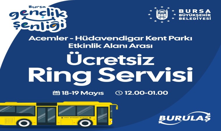 Bursalıların Hüdavendigar Kent Parkı’ndaki ‘Gençlik Şöleni’ne rahatça ulaşabilmesi amacıyla da 18-19 Mayıs Cumartesi ve Pazar günlerinde BursaRay seferleri saat gece 01.00’a kadar uzatıldı. Ayrıca 18-19 Mayıs Cumartesi ve Pazar günleri saat 12.00 ile gece 01.00 arasında Acemler-Hüdavendigar Kent Parkı etkinlik alanı arası ücretsiz ring servisinin olacağını da açıklandı.