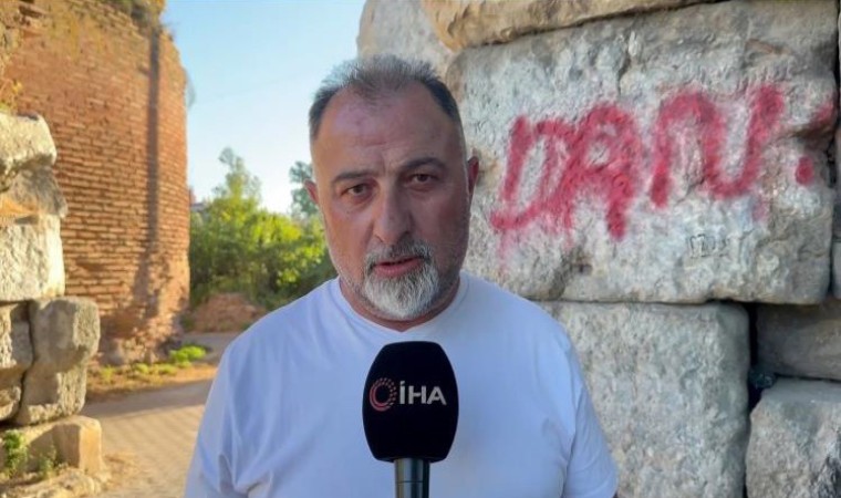 Bursa’nın İznik ilçesinde 2 bin yıllık tarihi surlara sprey boya ile yazılan yazılar tepki çekiyor.
