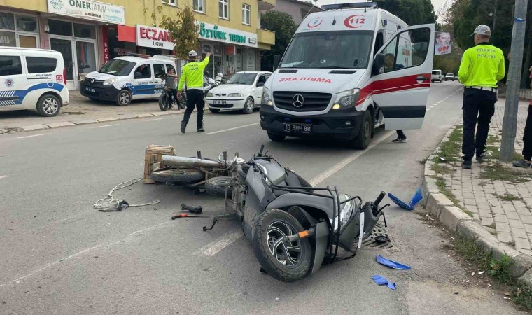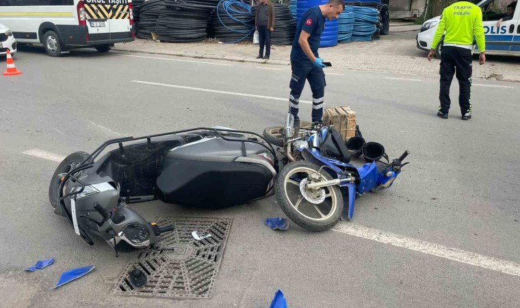 Kazada motosikletlerinden düşen sürücüler asfalt zemine savrularak yaralandılar.