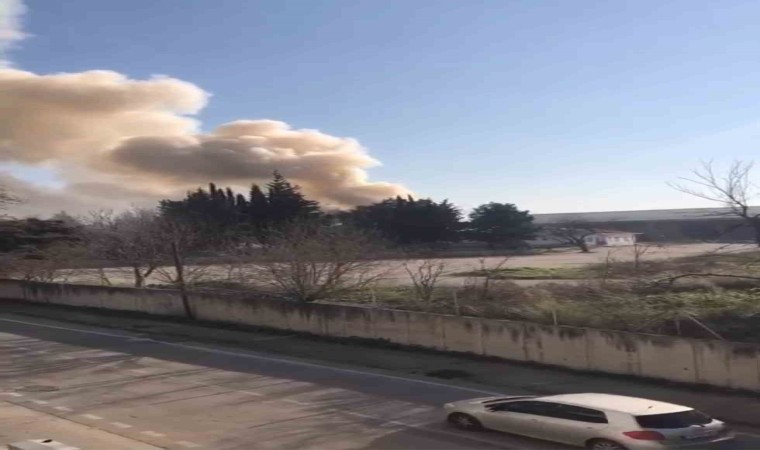 Bursa’da bir ahır alev alev yanarken, içeride kimsenin olmaması muhtemel bir faciayı önledi.