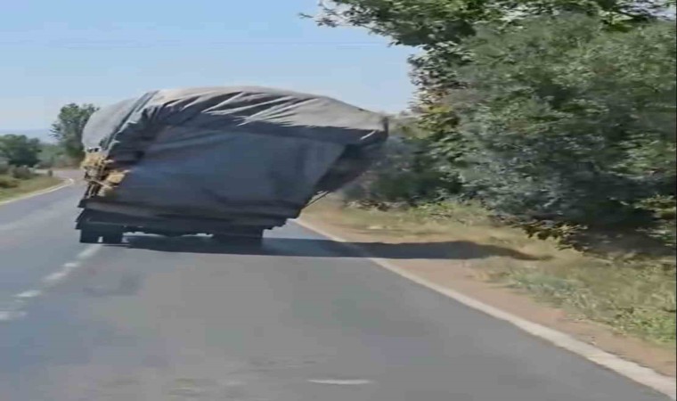 Olay İzink ilçesinde yaşandı. Sürücüsünün ismi öğrenilemeyen kamyonet, aşırı yükle caddelerde ilerledi. Aşırı yükün bulunduğu kamyonet, virajlara girdiğinde yan yatarak devrilme tehlikesi de yaşadı. Sürücünün trafiği tehlikeye düşürdüğü anlar kameraya yansırken, trafikteki diğer sürücüler tarafından tepkiyle karşılandı.