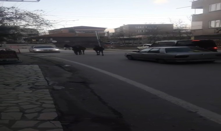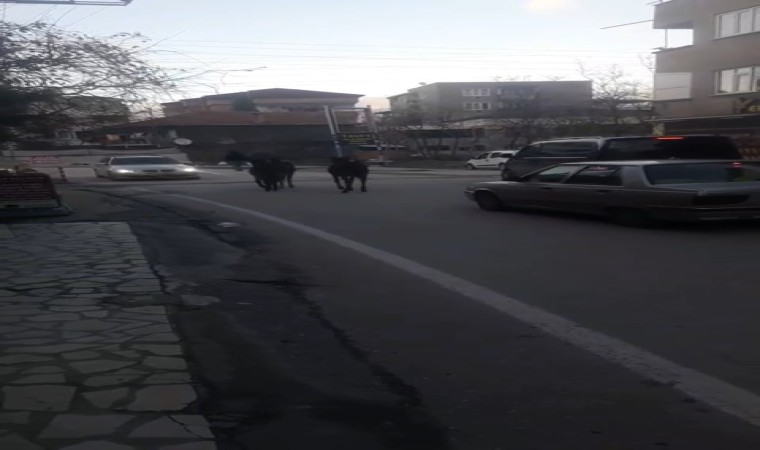Bursa’nın Osmangazi ilçesi Panayır Mahallesi’nde başıboş atlar ana caddeye çıktı. Dakikalarca sürü halinde ilerleyen atlar bazı sürücülere zor anlar yaşattı. Atların dakikalarca cadde üzerinde ilerlediği görülürken, bir süre sonra gözden kayboldu.