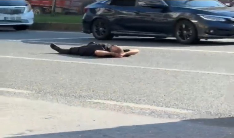 Bursa’nın Orhangazi ilçesinde sabah saatlerinde yaşanan ilginç olayda bir şahıs trafiğin yoğun olduğu ana yolun ortasına yattı. Sürücüler korna çalarak vatandaşı uyarsa da o rahatını hiç bozmadı.