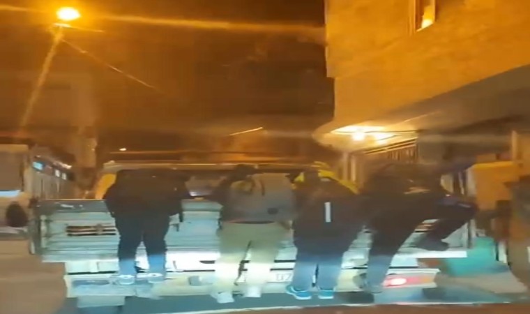 Bursa’nın Osmangazi ilçesi Merinos Mahallesi üzerinde açık kasa bir kamyoneti gören çocuklar, aracın kasasına tutundu. Dakikalarca bu şekilde ilerleyen çocuklar kameraya yansırken, kamyonet sürücüsünün durmaması dikkat çekti. Çocukların tehlikeli yolculuğunda şans eseri korkulan yaşanmadı.