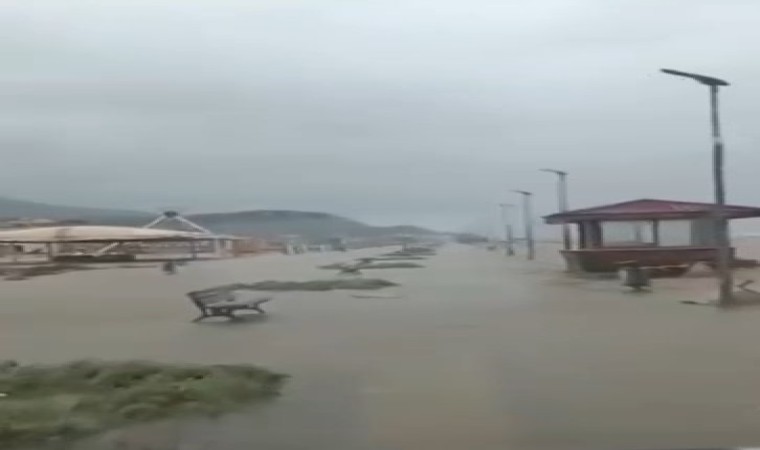 Bursa’da dün etkili olan sağanak yağış bazı sahil bölgelerinde denizin taşmasına ve karayolu ile birleşmesine sebep oldu.