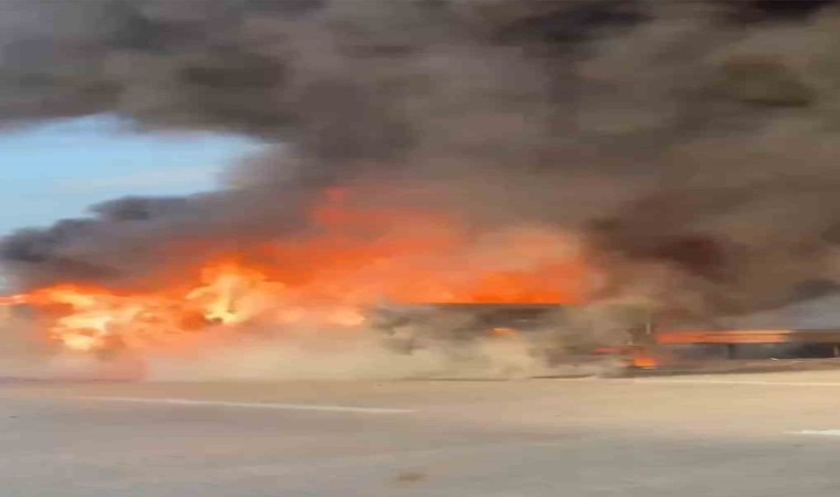 Dorsenin alev alev yanması dron ile görüntülendi.