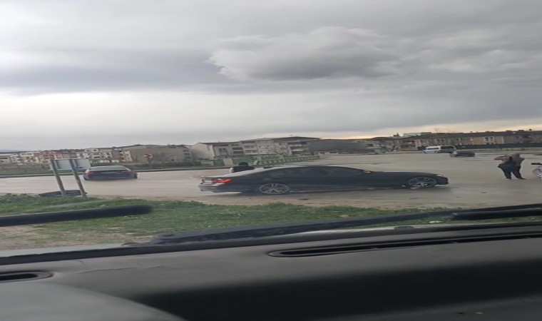 Drift atan aracın o anları cep telefon kamerasına yansıdı.