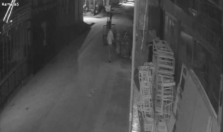 Olay, sabah 07.00 sıralarında Mahmudiye Mahallesi 9. Mobilya Sokak’ta meydana geldi. Çek çek araçlarıyla mobilya sanayiide dolaşan 2 şahıs, sokaktaki bir iş yerinin önünde nakliye için hazırlanan metal koltukları gözüne kestirdi. Şüphelilerden biri iş yerinin önünde paketlenen metal bahçe koltuğunu aldı. Demir koltuğu çek çek aracına koyan şahıslar, uzaklaşarak kayıplara karıştı. Hırsızlık anı güvenlik kamerasına saniye saniye yansıdı.