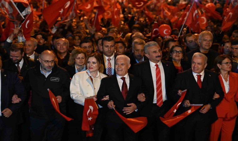 İki başkanın açıklamalarının ardından coşkulu yürüyüş başladı. Yürüyüşe, Başkan Mustafa Bozbey ve eşi Seden Bozbey ile Başkan Şadi Özdemir ve eşi Nuray Özdemir’in yanı sıra CHP İl Başkanı Nihat Yeşiltaş, CHP Bursa Milletvekilleri Nurhayat Altaca Kayışoğlu, Hazar Öztürk, Kayıhan Pala ve Orhan Sarıbal, Osmangazi Belediye Başkanı Erkan Aydın, İstanbul Planlama Ajansı (İPA) Başkanı Buğra Gökçe, CHP ilçe Başkanları, belediye meclis üyeleri, belediye bürokratları, STK temsilcileri ve toplumun tüm kesimleri katıldı. Her yaştan yurttaşın ellerinde bayraklarla yer aldığı yürüyüşte bulvar adeta insan seline dönüştü. Olağanüstü ilgi nedeniyle adeta adım adım ilerleyen yürüyüş, vatandaşların omuz omuza söyledikleri ‘Yaşasın Cumhuriyet’ sloganları ve marşlarıyla renklendi.