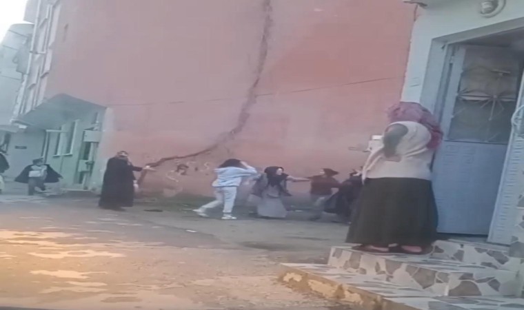 Bursa’da gürültü nedeniyle tartışmaya yaşayan iki kız saç baş birbirine girdi. Kavgayı mahalleli ayırırken o anlar kameraya yansıdı.