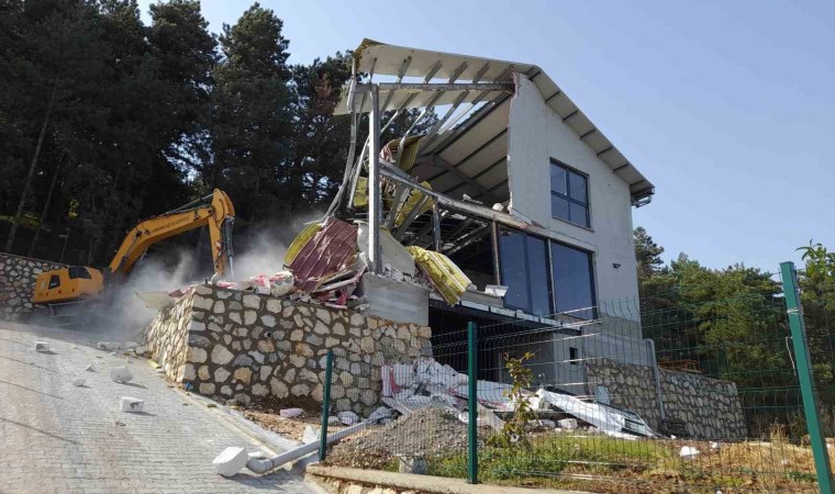 Osmangazi Belediyesi, Uludağ eteklerinde yer alan Gökçeören Mahallesi’nde imara aykırı şekilde inşa edildiği belirlenen lüks villayı yıktı.