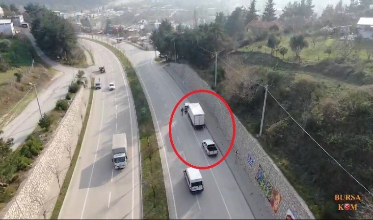 Öte yandan, kasası kaçak makaron dolu kamyonun polis tarafından durdurulma anı havadan dron ile görüntülendi.