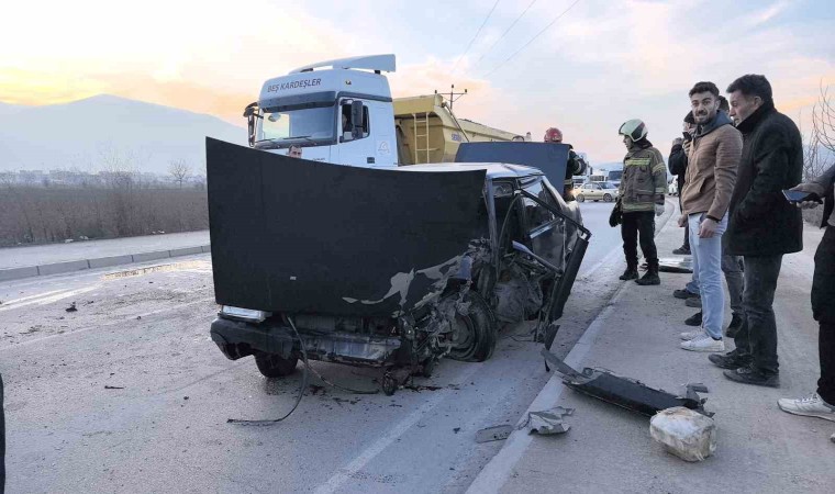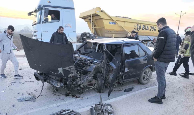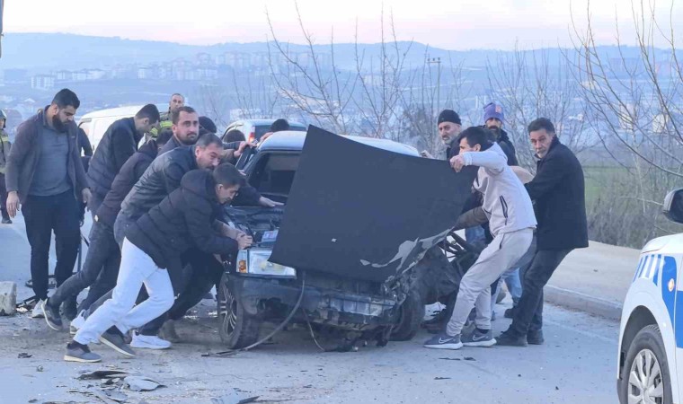 Bursa’nın İnegöl ilçesinde kamyonla kafa kafaya çarpışan otomobilde sıkışan sürücü, çevredeki vatandaşlar tarafından sıkıştığı yerden kurtarıldı.