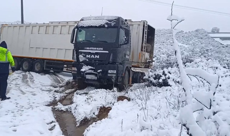 Bursa’da yağan kar sonrası tırlar yolda kaldı. O anlar vatandaş kamerasına yansıdı.