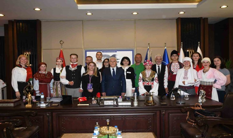 Bursa’da ağırlanan yabancı konuklar ve halk dansları ekipleri, Bursa Büyükşehir Belediye Başkanı Mustafa Bozbey ile Nilüfer Belediye Başkanı Şadi Özdemir’i de ziyaret etti. Şahinkaya Eğitim Kurumları Yönetim Kurulu Başkan Vekili Dilay Şahinkaya, Hexagon Kampüs Müdürü Cenk Azkeskin ve Sanat Bölüm Başkanı Tuba Palancı’nın eşlik ettiği bu ziyaretlerde, renkli diyaloglar ve paylaşımlar yaşandı. Kabullerde, Bursa’nın tarihi ve kültürel zenginlikleri yanında şehirle ilgili önemli bilgiler paylaşıldı. Kendilerine gösterilen misafirperverlikten dolayı memnuniyetlerini dile getiren ekipler, ülkelerinden getirdikleri yöresel hediyeleri takdim ederek, bu dostane karşılamanın hatırası olarak anı ölümsüzleştirdi.