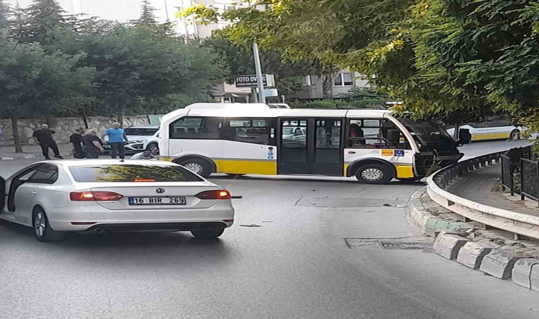 Bursa’nın Gemlik ilçesinde, önünde duran otomobile çarpmamak için manevra yapan minibüs sürücüsü demir korkuluklara çarptı. Kazada, minibüs şoförü yaralandı.