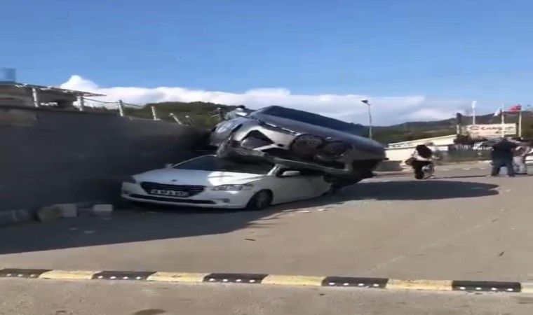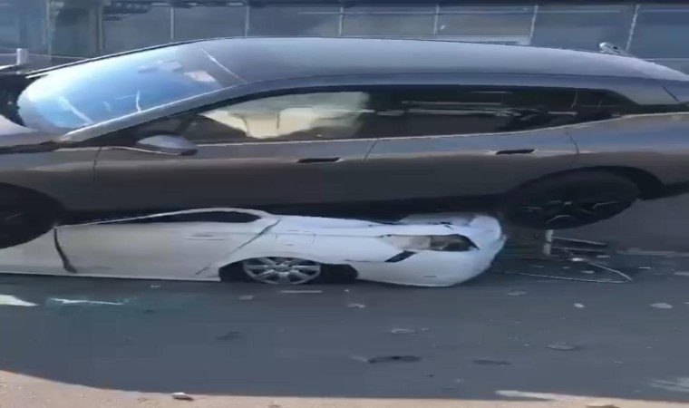 Edinilen bilgiye göre, seyir halindeki cip sürücüsünün kontrolünden çıkarak bariyerleri aştı. Park halindeki otomobilin üzerine düşerek duran cipi gören vatandaşlar durumu 112 Çağrı Merkezi’ne bildirdi. İhbarı üzerine olay yerine polis, itfaiye ve ambulans sevk edildi. Çevredekilerin şaşkınlıkla anlamaya çalıştığı kazada sürücü hafif yaralandı.