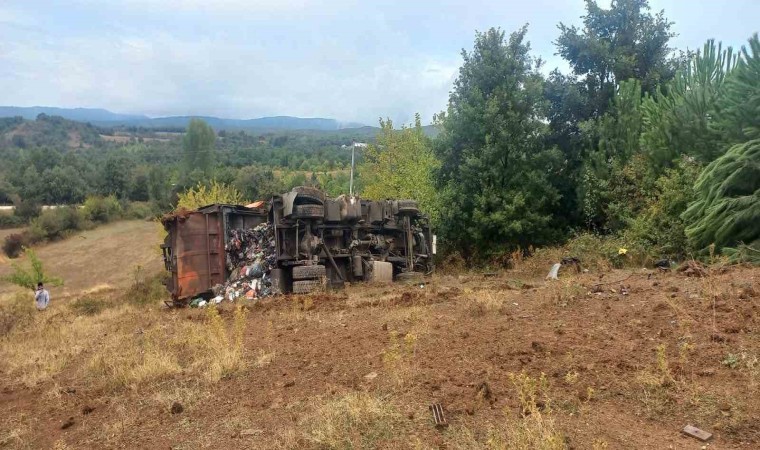 Bursa’nın İnegöl ilçesinde meydana gelen kazada kontrolden çıkan çöp kamyonu şarampole yuvarlandı. Kazada, sürücü ve 2 temizlik görevlisi yaralandı.