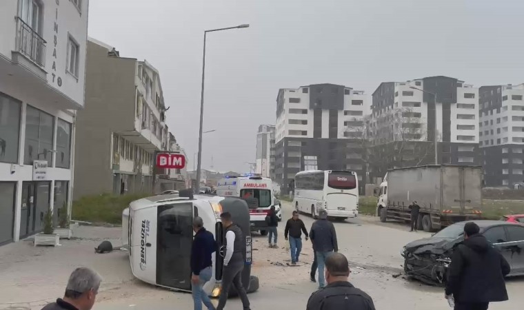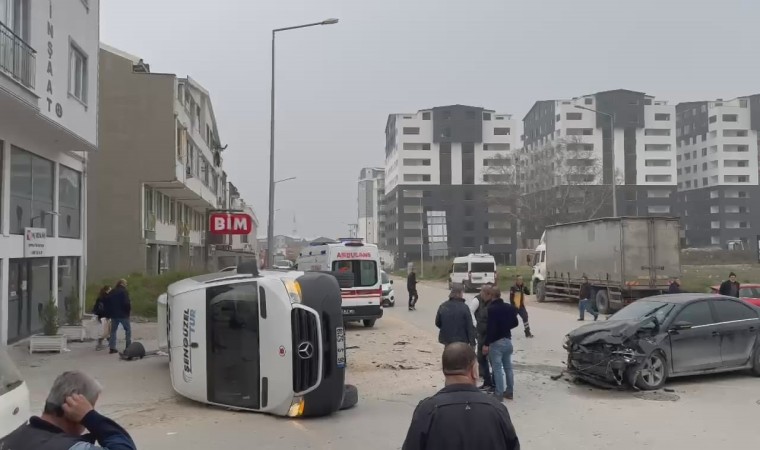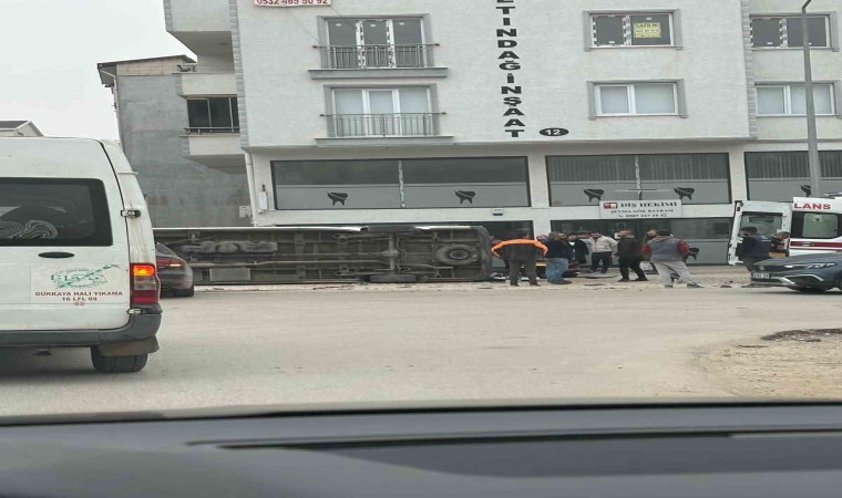 Bursa’da sürücüsünün direksiyon hakimiyetini kaybetmesi neticesi kontrolden çıkan minibüs yan yattı. Sürücünün yaralandığı kazada araçta yolcu olmaması facianın önüne geçerken, polis kazayla ilgili tahkikat başlattı.