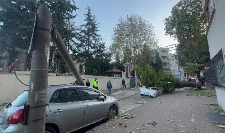 Yiğithan HÜYÜK/BURSA, (DHA)- BURSA'da etkili olan lodos nedeniyle aydınlatma direği ve ağaç, park halindeki 2 aracın üzerine devrildi.