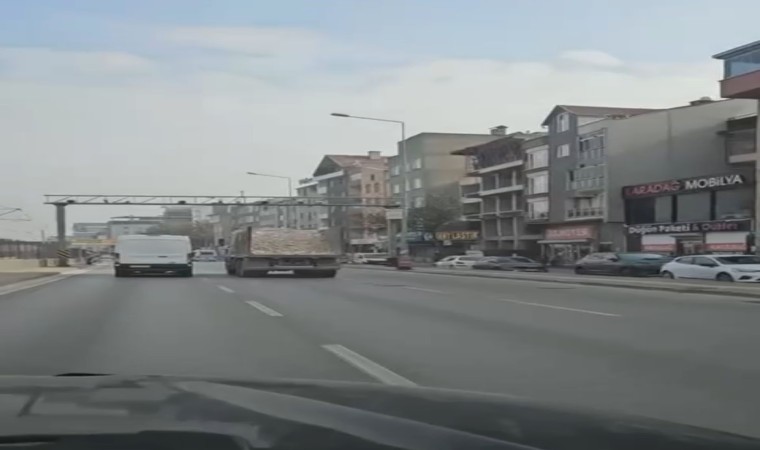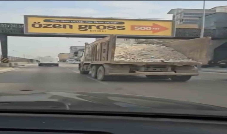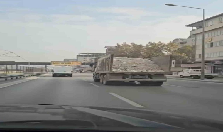 Bursa’da moloz taşıyan kamyon, tedbir almadan dakikalarca ilerledi. Tehlike saçan sürücü kameraya yansıdı.
