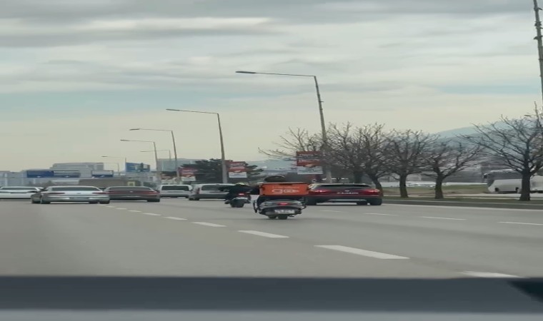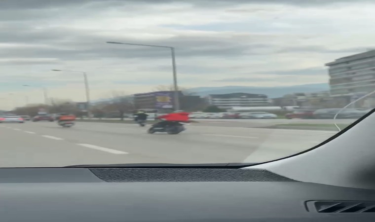Bursa’da motosikletli gençlerin trafikteki tehlikeli hareketleri yürekleri ağza getirirken, o anlar kameraya yansıdı.