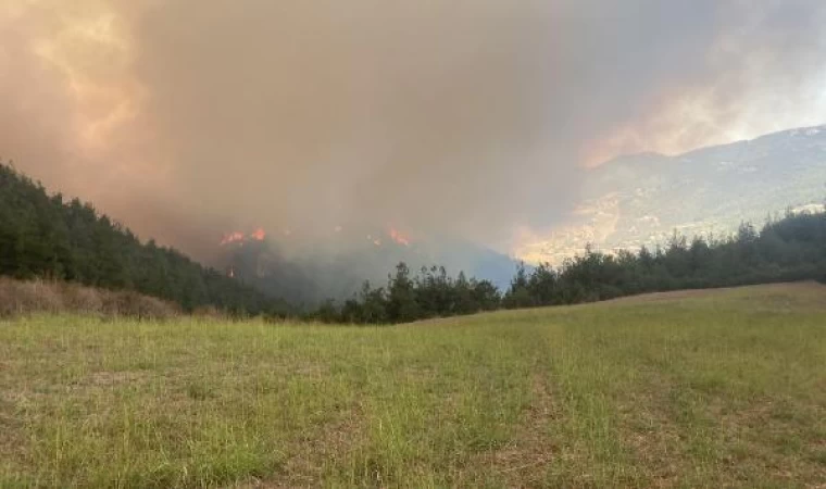 Yerleşim yerine uzak bir noktada çıkan yangına, ekiplerin müdahalesi sürüyor. (DHA)