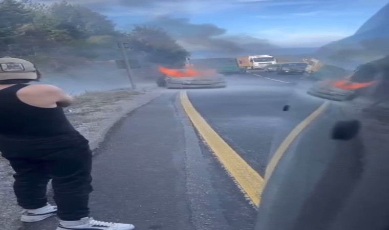 İnegöl ilçesi, Mezitler Yolu üzerinde seyir halinde olan otomobilin sürücüsü, aracından dumanlar çıktığını görünce hemen emniyet şeridine geçerek aracı durdurdu. Kısa süre içerisinde alevlere teslim olan aracı gören diğer sürücüler, durumu itfaiye ekiplerine bildirdi. İtfaiye ekiplerinin müdahalesiyle yangın söndürüldü. Yangında can kaybı olmazken, araç kullanılamaz hale geldi.