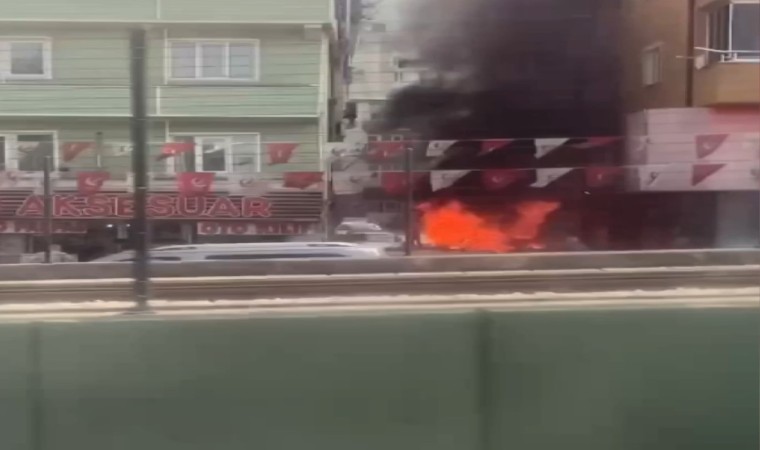 Otomobil alev alev yanması vatandaşların kamerasına yansıdı
