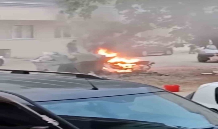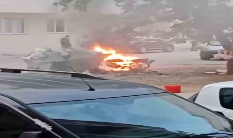 Bursa’da bir motosiklet park halindeyken alev aldı. Kısa sürede büyüyen alevler iki tekerlekli aracı küle çevirdi.