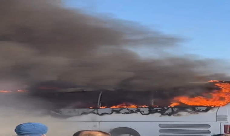 Otobüsün alev alev yanma anı ise çevredeki vatandaşların cep telefonu kamerasına yansıdı.