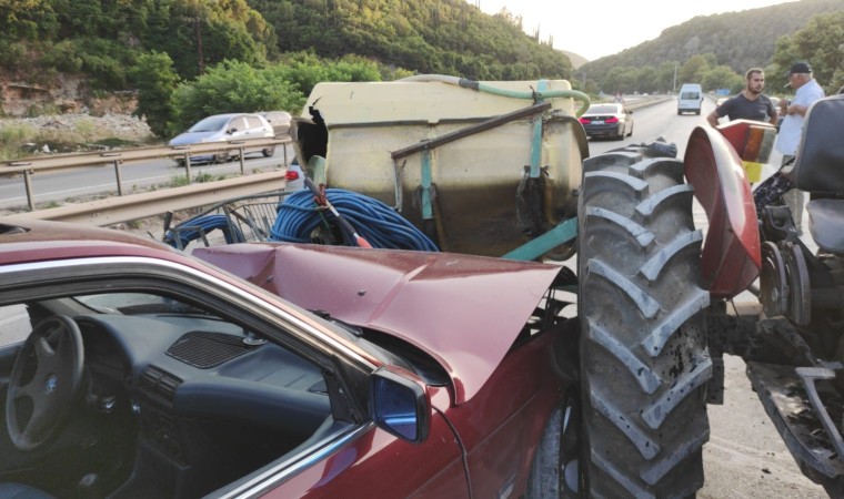 Kaza, Gemlik girişinde meydana geldi. Oğuz Borucu (33) idaresindeki 16 BAG 852 plakalı otomobil sürücüsünün kontrolden çıkarak bariyerlere çarptı. Savrulan otomobil Neşe Kozan ile seyreden Ayhan Kozan idaresindeki traktörün ilaç tankerine vurarak durabildi. Kaza sonucu traktörde bulunan 39 yaşındaki kadın yaralandı. İhbar üzerine gelen sağlık ekipleri Neşe Kozan’ı Gemlik Devlet Hastanesine sevk etti. Yapılan kontrollerde, otomobil sürücüsünün 1.35 promil alkollü olduğu ortaya çıktı. Otomobil sürücüsü, Gemlik İlçe Emniyet Müdürlüğünde gözaltına alındı. Kaza ile alakalı tahkikat başlatıldı.
