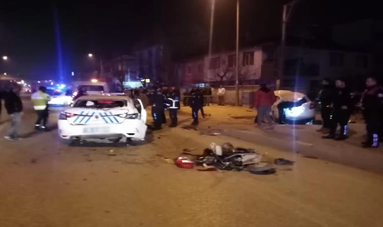 Yavuz YILMAZ/BURSA, (DHA)- BURSA'nın İnegöl ilçesinde, polis otosu, otomobil ile elektrikli bisikletin karıştığı zincirleme kazada 2'si polis 4 kişi yaralandı.