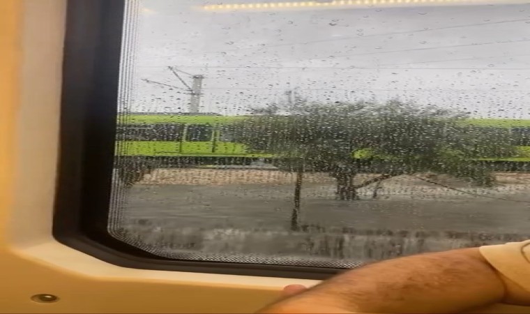 Bursa’da yaklaşık 1 saat süren sağanak yağış, hayatı felç etti. Vatandaşlar hazırlıksız yakalandığı yağmur sebebiyle ne yapacağını şaşırırken, yoğun yağış sebebiyle metro seferleri de aksadı. BURULAŞ, yaptığı açıklamayla Acemler-Ataevler istasyonu arasının geçici süreliğine ulaşıma kapatıldığını açıkladı. Tren içerisinde sağanak yağmura yakalanan vatandaşlar ise, tedirgin bir şekilde dışarıda olan biteni izledi. Yetkililerin uyarısıyla trendeki vatandaşlar aşağı indirildi.