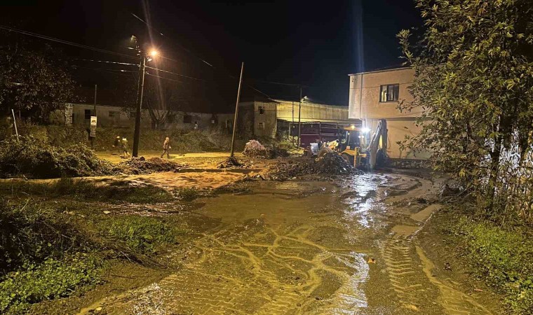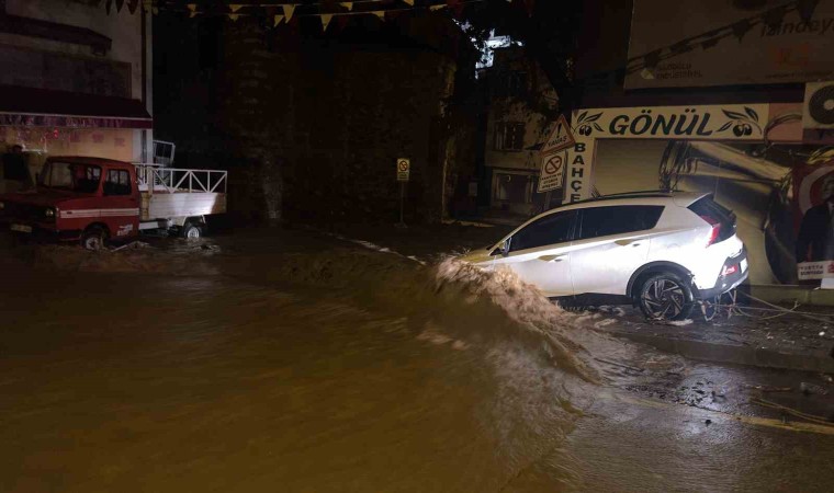 Tirilye Mahallesi’nde bulunan dereler sokaklara taştı. İhbar üzerine bölgeye çok sayıda itfaiye, arama kurtarma, jandarma ekibi sevk edildi. Bölgeye gelen kepçe ve ekskavatörler çalışmalarını sürdürürken, Mudanya Belediye Başkanı Hayri Türkyılmaz ise selin yaşandığı bölgede incelemelerde bulundu.