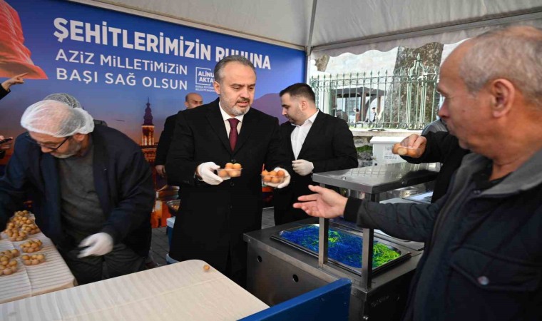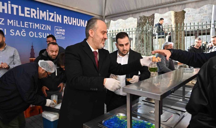 Bursa’da cuma namazı öncesinde eller şehitlerimiz için semaya kalkarken, Bursa Büyükşehir Belediyesi tarafından da namaz sonrası 5 bin kişiye lokma dağıtıldı.