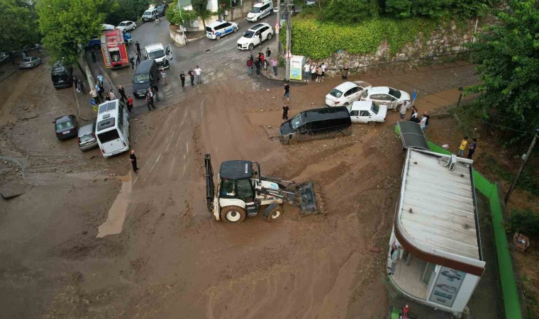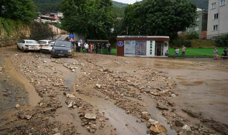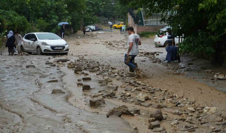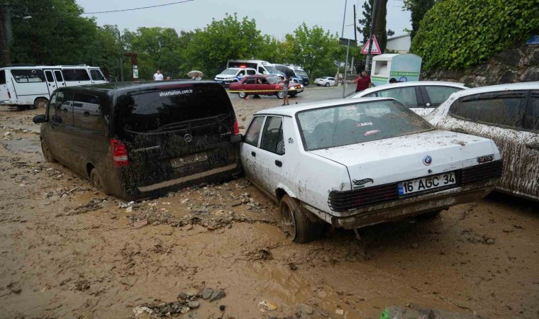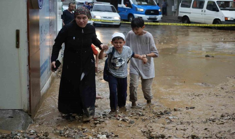 Bursa’da sağanak yağış sebebiyle birçok evi su basarken, taşan dereler sokaklarda park halinde bulunan araçları önüne kattı. Uludağ’ın eteklerindeki Yıldırım ilçesi Teferrüç Mahallesi’nde bulunan Karınca Deresi’nden kopan taş parçaları sokağı yürünmez hale getirdi. Dereden taşan sulara dayanamayan otomobiller üst üste geldi. Kullanılmaz hale gelen otomobillerini gören vatandaşlar, yaşananları hayretler içerisinde izledi. Derenin getirdiği sel sonrası yolda yürüyen yaşlı bir kadın dengesini kaybedip yere düştü. Çevredeki vatandaşların çabalarıyla kurtarılan kadın, yürümekte zorlandığı için terliklerini bırakıp yalın ayak yoluna devam etti.