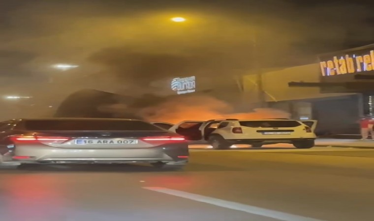 Bursa’da seyir halindeki otomobil alev alev yandı. O anlar amatör kameraya yansıdı.