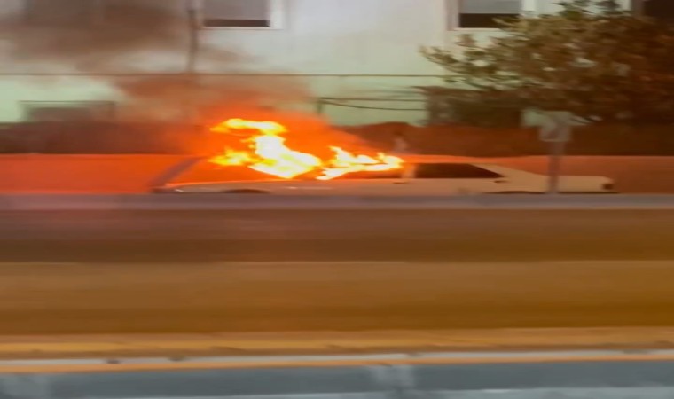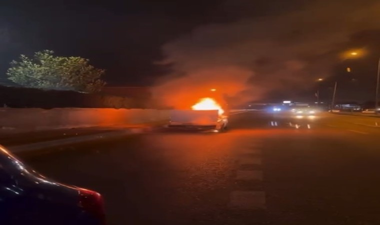 Otomobilin alev alev yanma anı ise çevrede bulunan vatandaşların cep telefon kamerasına yansıdı.